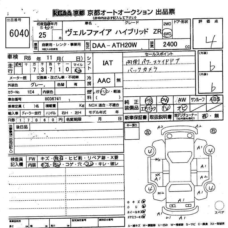 TOYOTA VELLFIRE HYBRID - лот 6040
