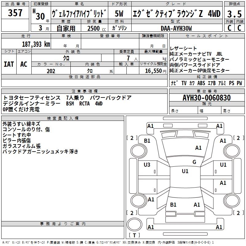 TOYOTA VELLFIRE HYBRID - лот 357
