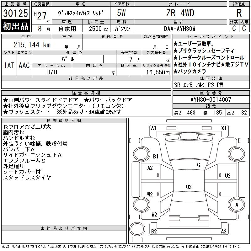 TOYOTA VELLFIRE HYBRID - лот 30125