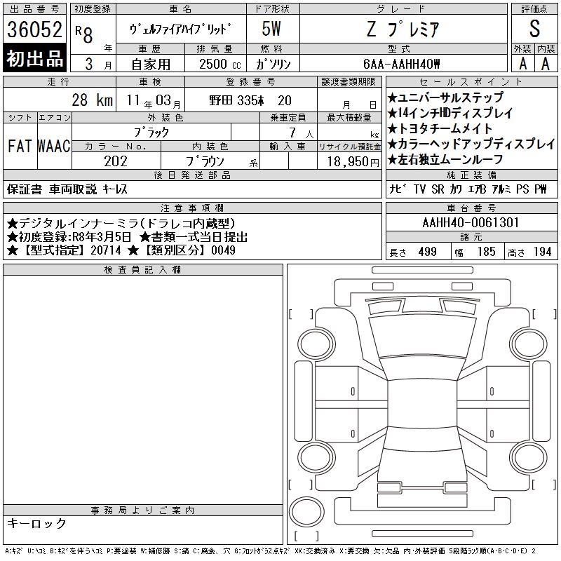 TOYOTA VELLFIRE HYBRID - лот 36052