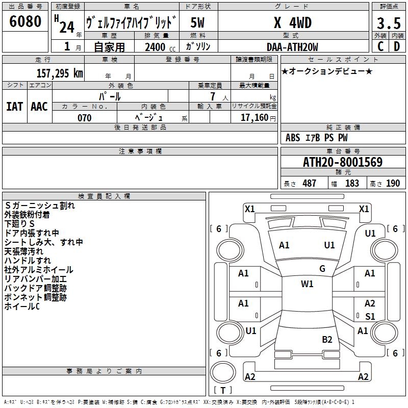 TOYOTA VELLFIRE HYBRID - лот 6080