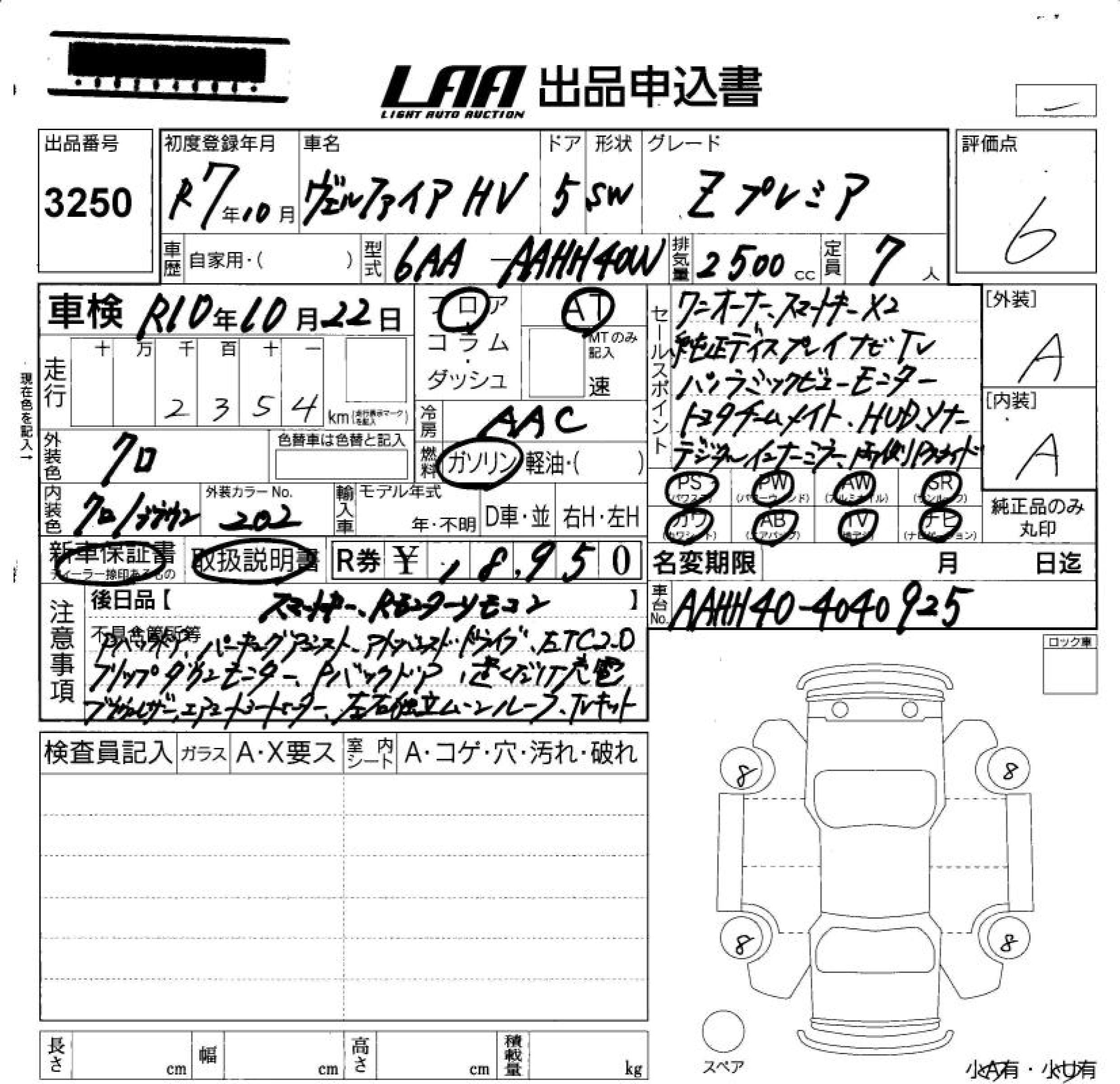 TOYOTA VELLFIRE HYBRID - лот 3250