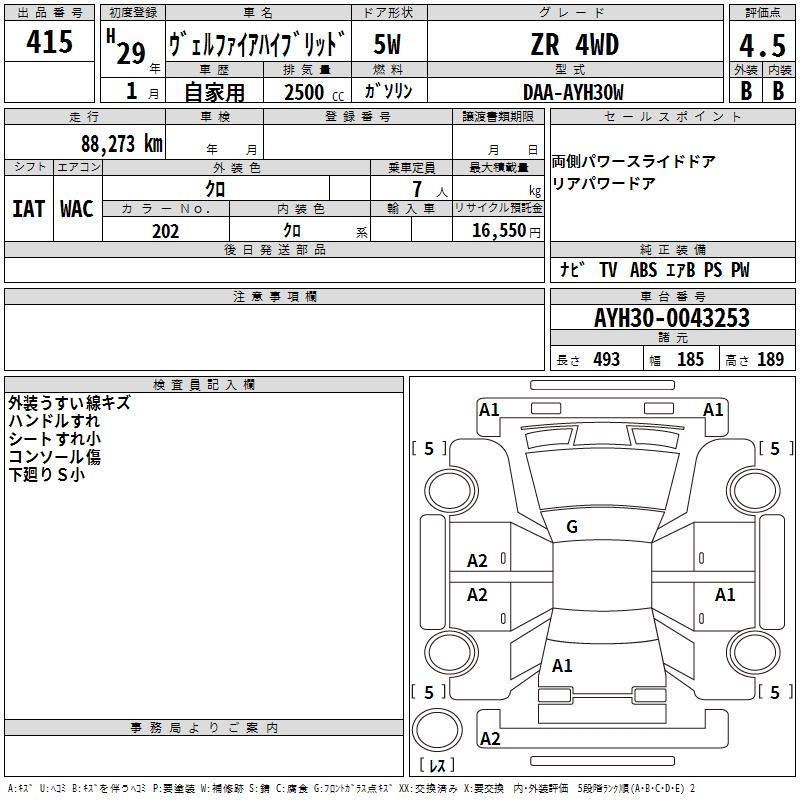 TOYOTA VELLFIRE HYBRID - лот 415