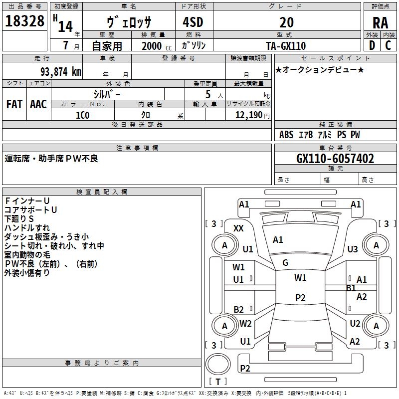 TOYOTA VEROSSA 20 - лот 18328