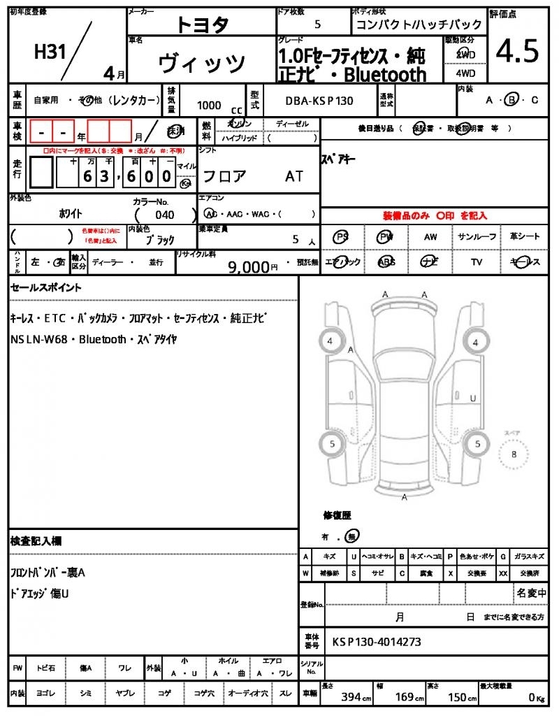 Все аукционы TOYOTA VITZ