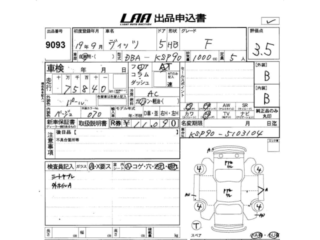 TOYOTA VITZ - лот 9093