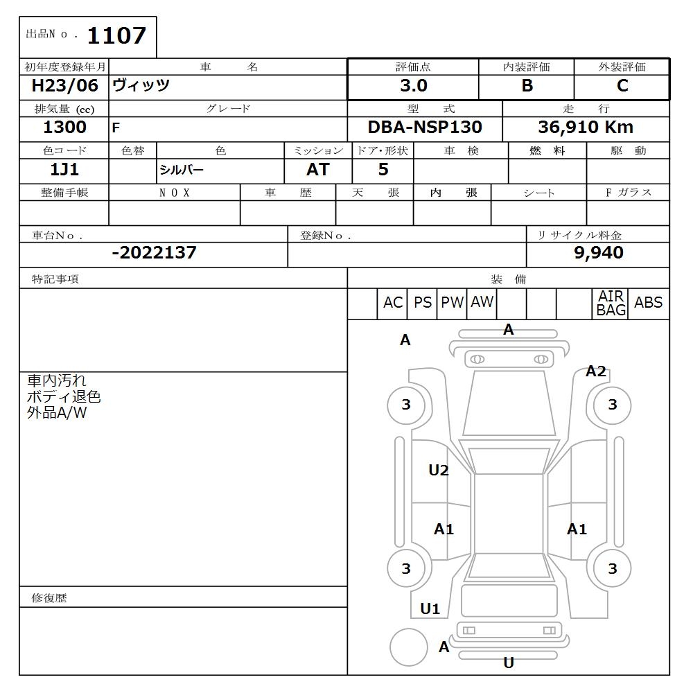 TOYOTA VITZ - лот 1107