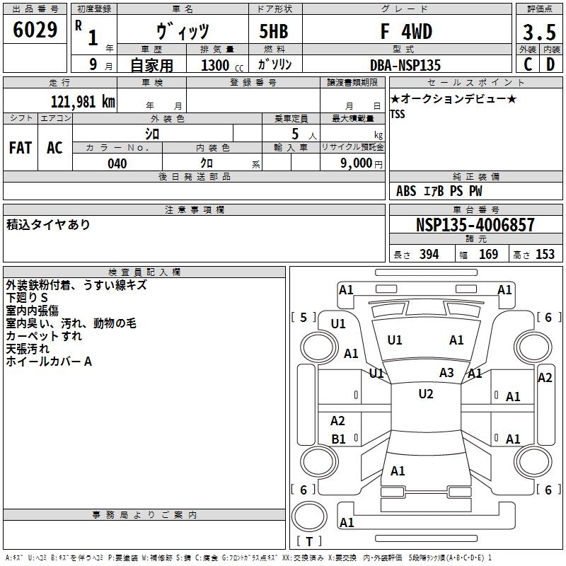 TOYOTA VITZ - лот 6029