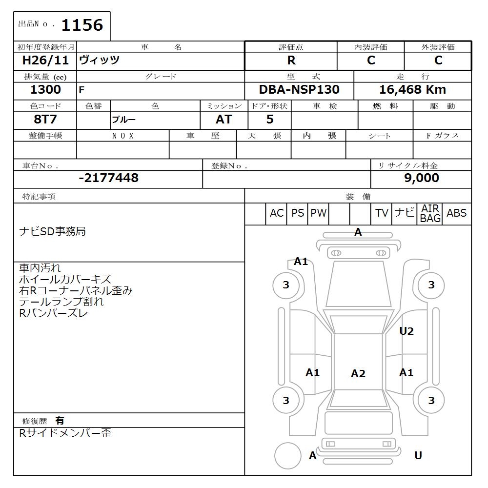 TOYOTA VITZ - лот 1156