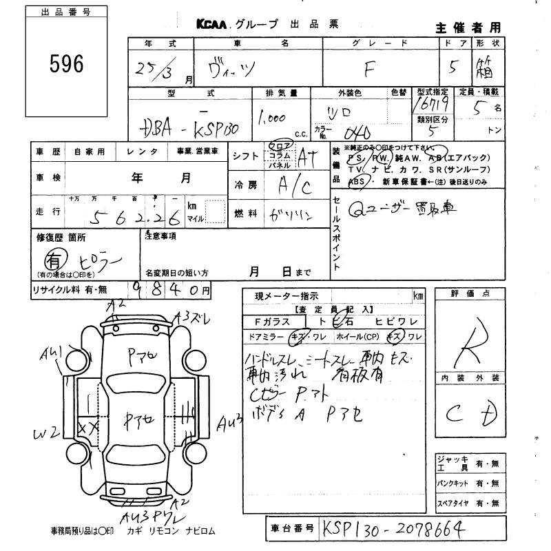 TOYOTA VITZ - лот 596