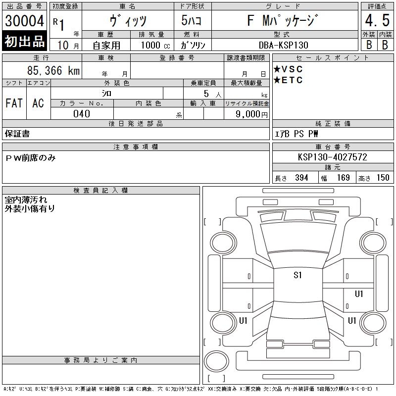 TOYOTA VITZ - лот 30004