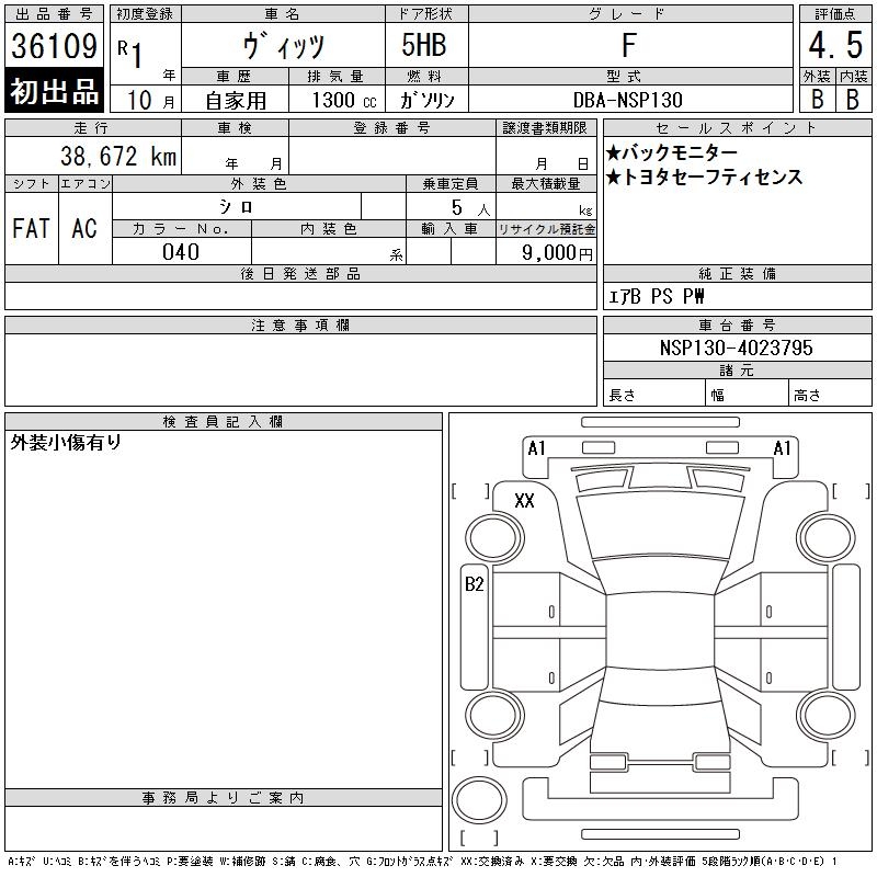 TOYOTA VITZ - лот 36109