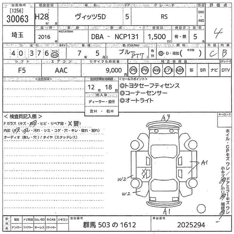 TOYOTA VITZ - лот 30063