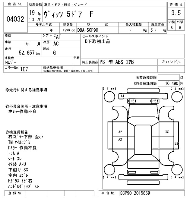 TOYOTA VITZ - лот 4032