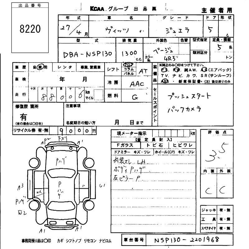TOYOTA VITZ - лот 8220