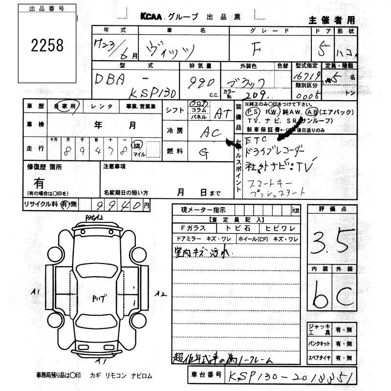 TOYOTA VITZ - лот 2258