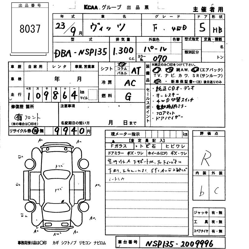 TOYOTA VITZ - лот 8037