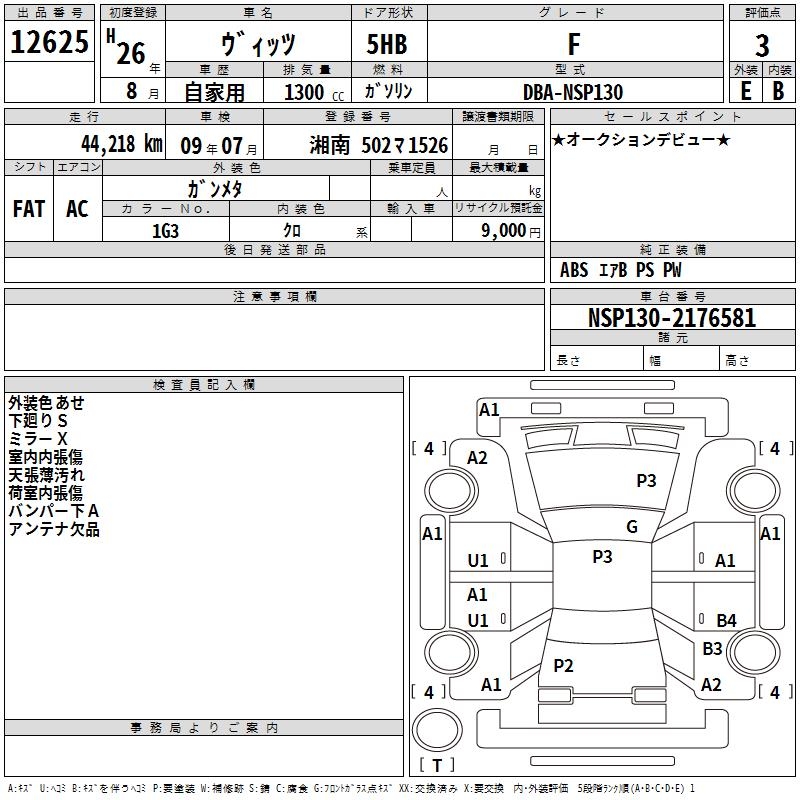 TOYOTA VITZ - лот 12625