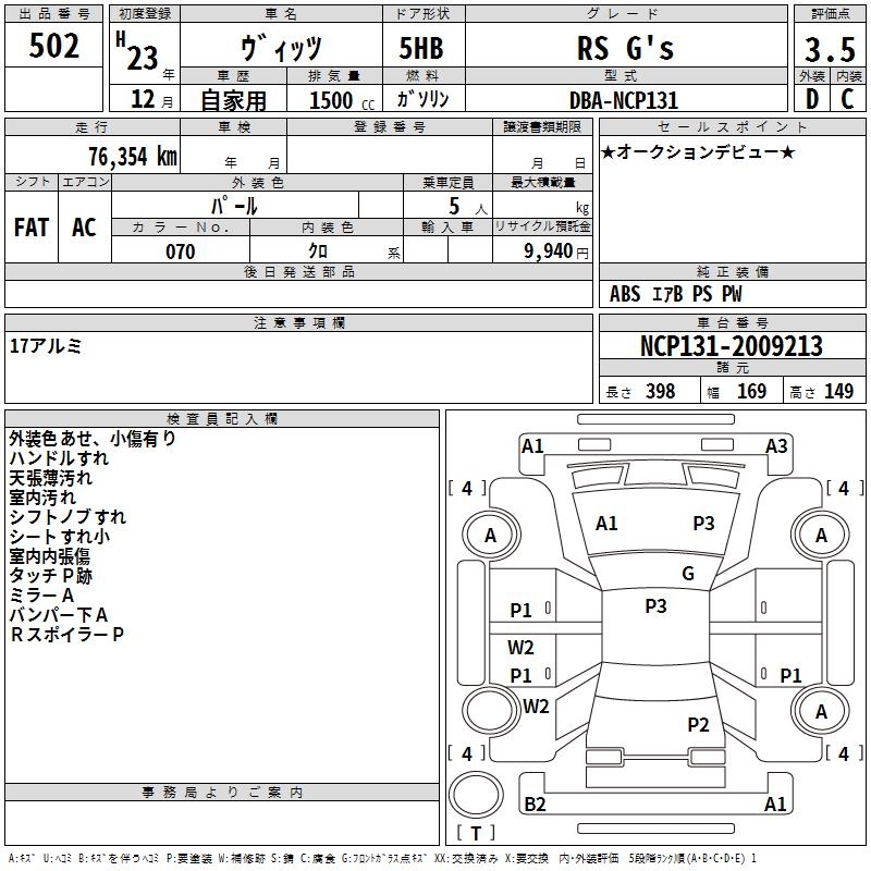 TOYOTA VITZ - лот 502