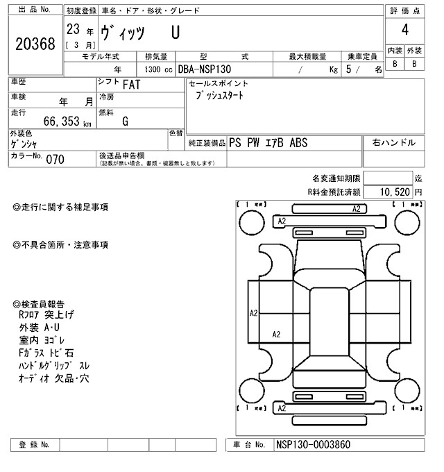 TOYOTA VITZ - лот 20368