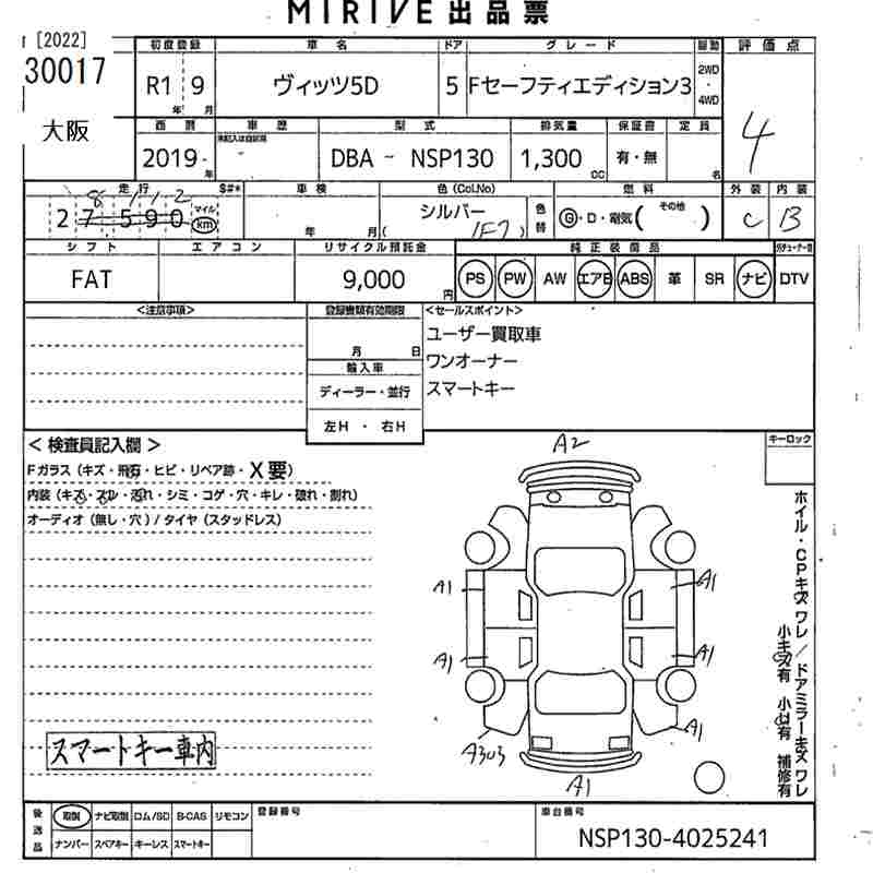 TOYOTA VITZ - лот 30017