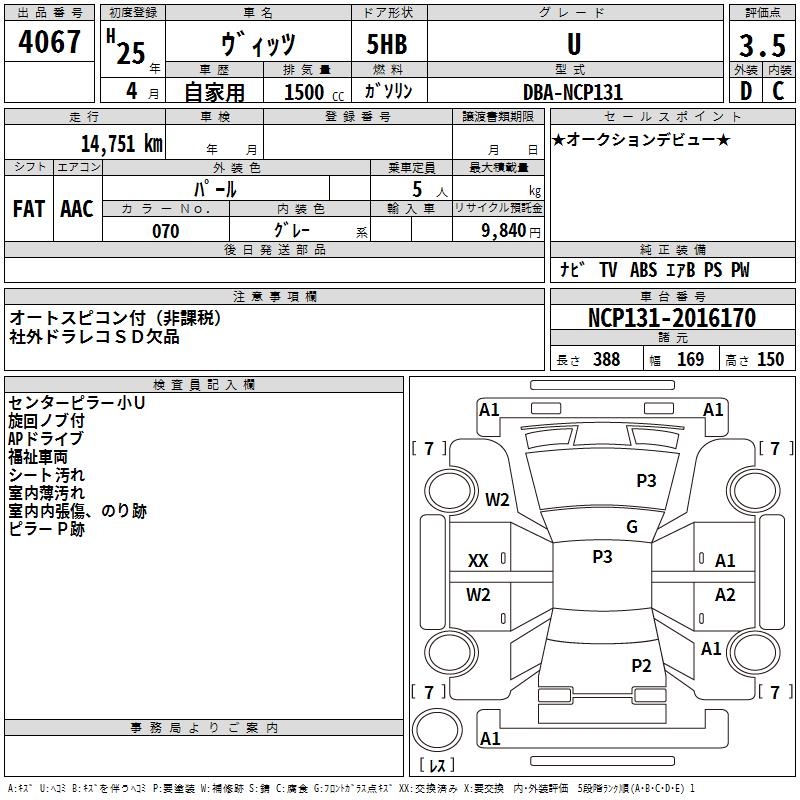 TOYOTA VITZ - лот 4067