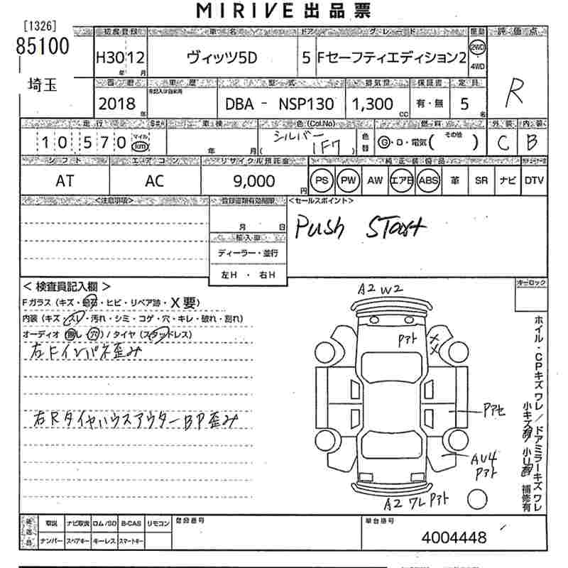 TOYOTA VITZ - лот 85100