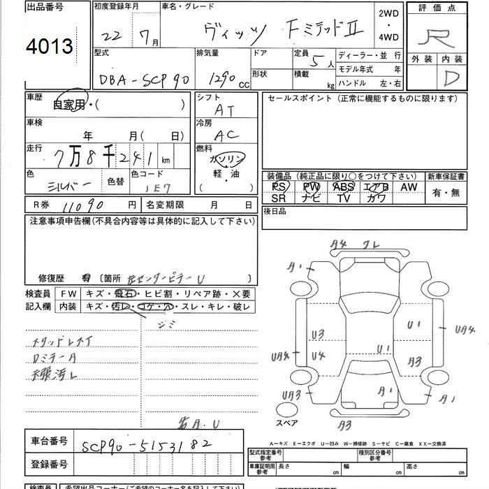 TOYOTA VITZ - лот 4013