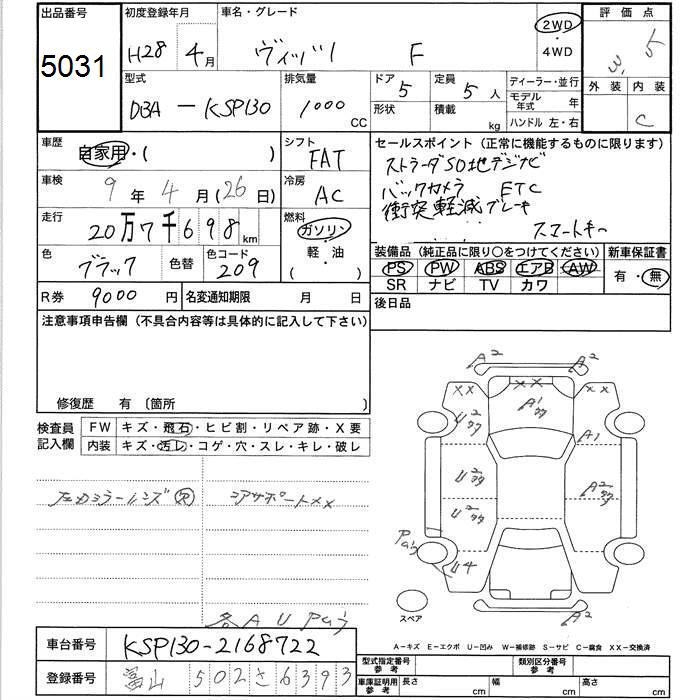TOYOTA VITZ - лот 5031