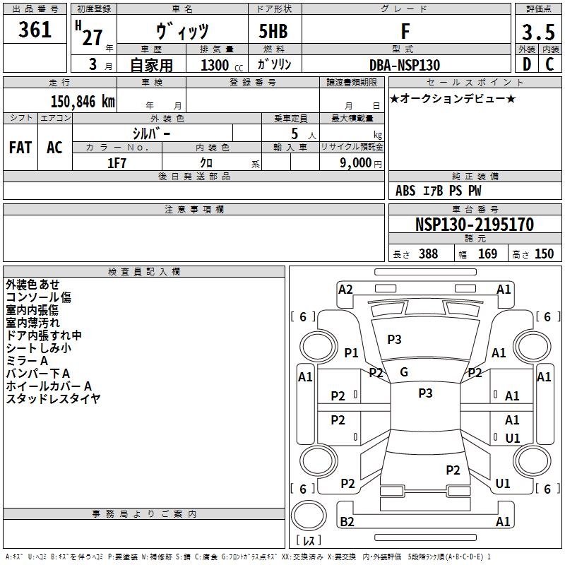 TOYOTA VITZ - лот 361