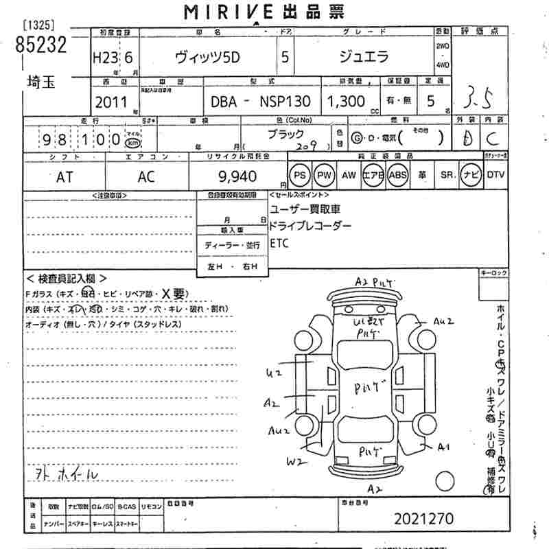 Все аукционы TOYOTA VITZ