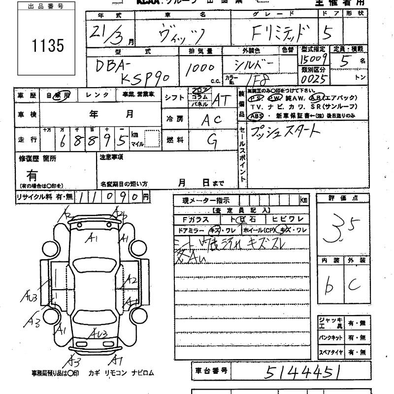 TOYOTA VITZ - лот 1135
