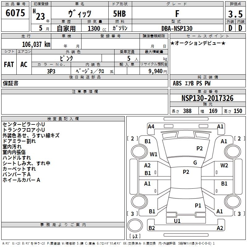 TOYOTA VITZ - лот 6075