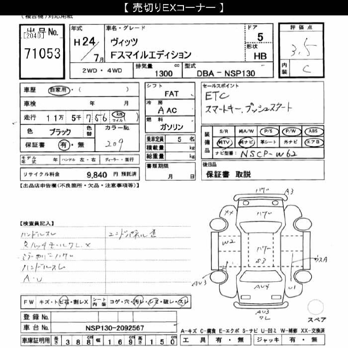 TOYOTA VITZ - лот 71053