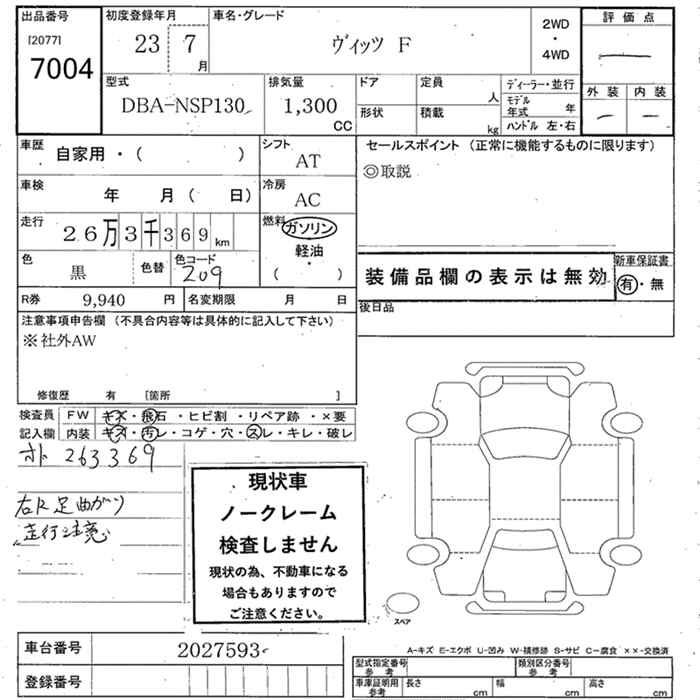 TOYOTA VITZ - лот 7004