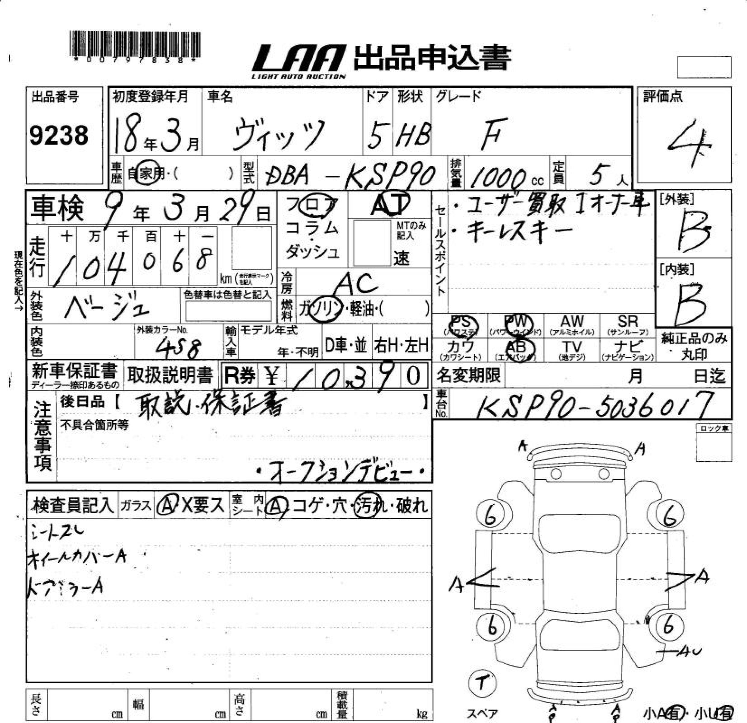 TOYOTA VITZ - лот 9238