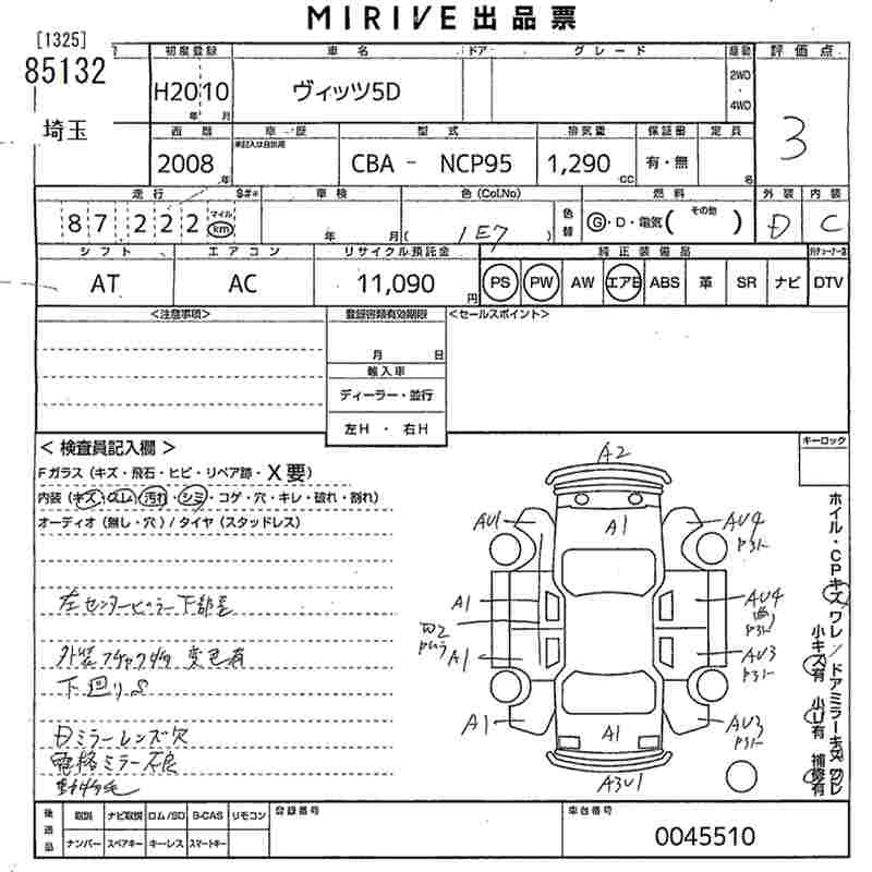 TOYOTA VITZ - лот 85132