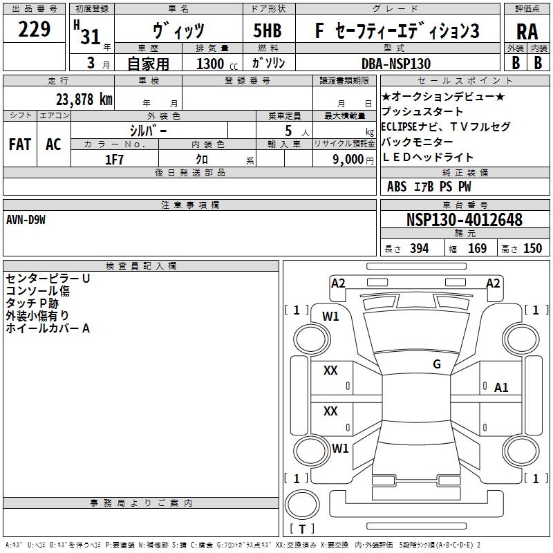 TOYOTA VITZ - лот 229