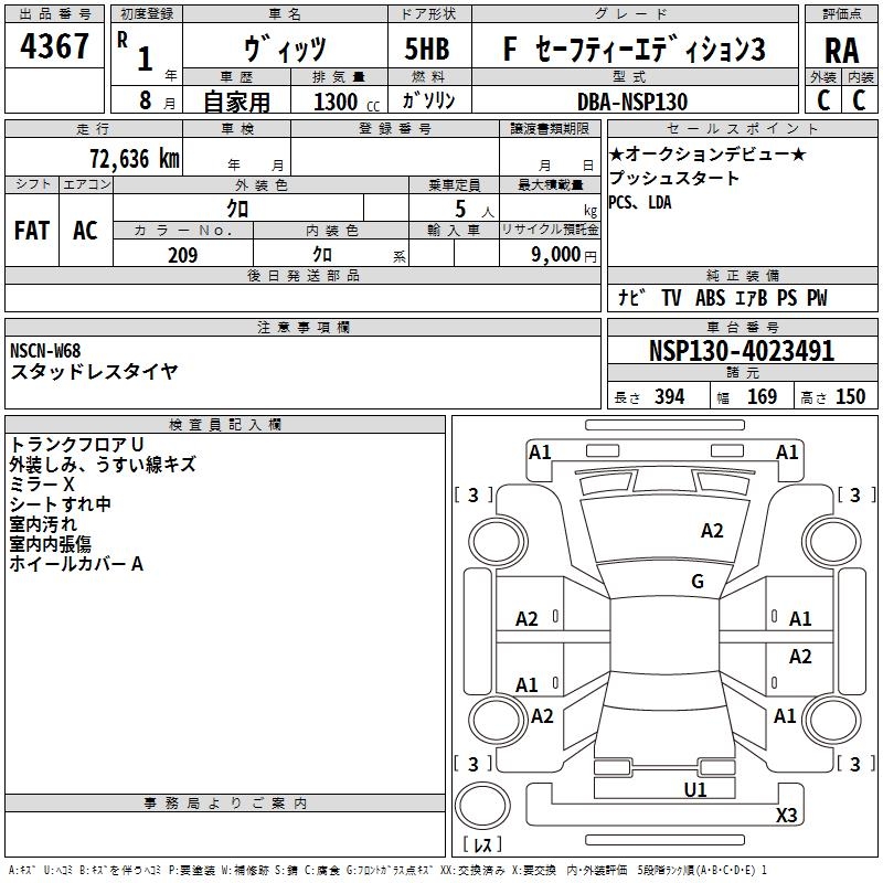 TOYOTA VITZ - лот 4367