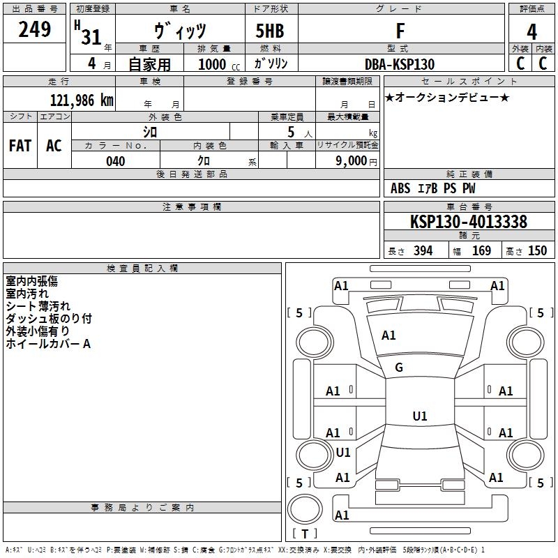 TOYOTA VITZ - лот 249