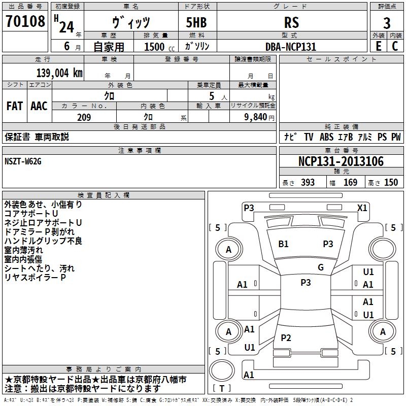 TOYOTA VITZ - лот 70108
