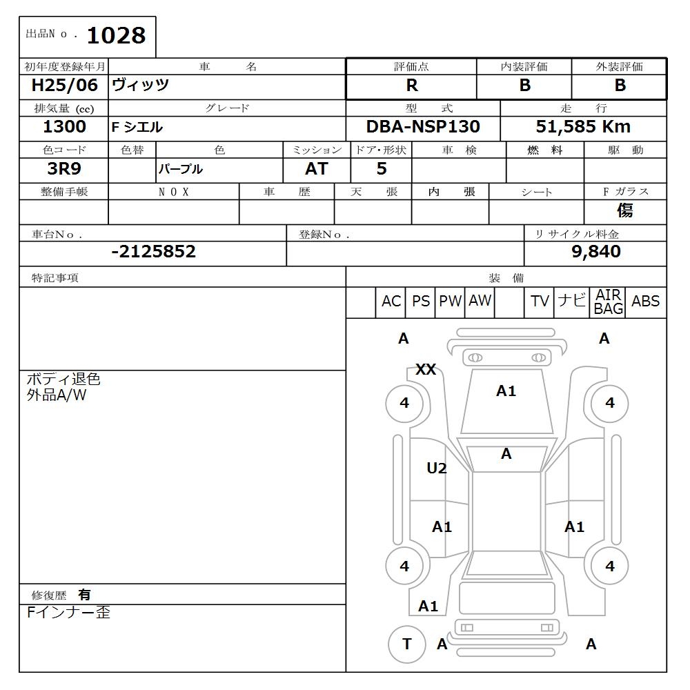 TOYOTA VITZ - лот 1028