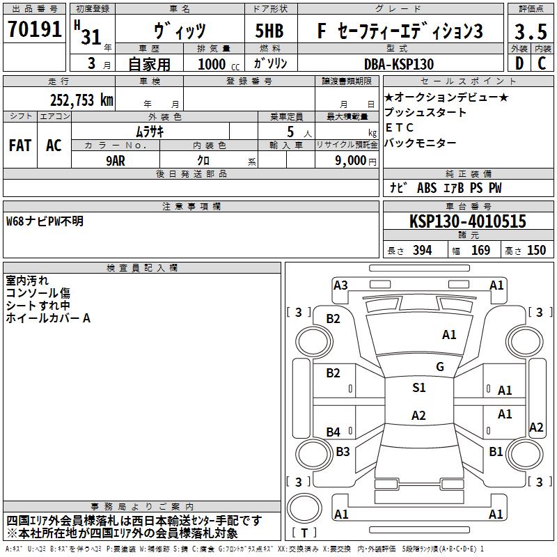 TOYOTA VITZ - лот 70191