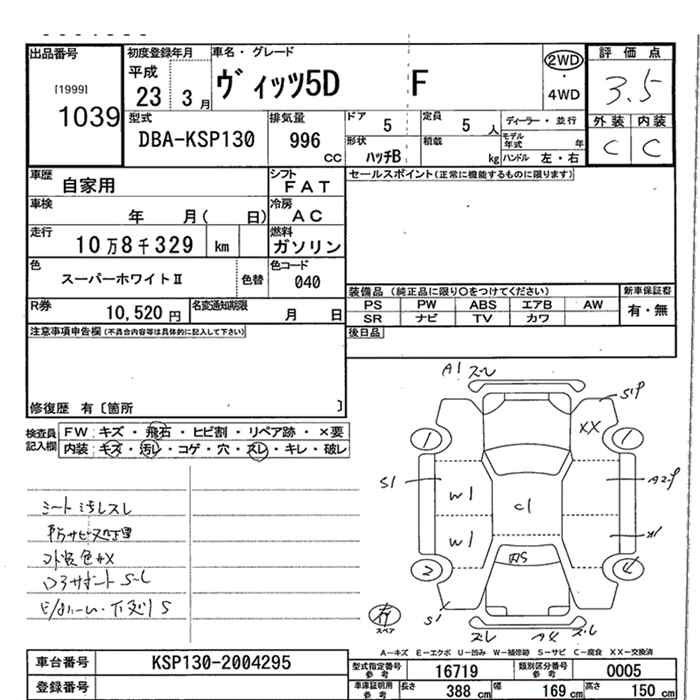 TOYOTA VITZ - лот 1039