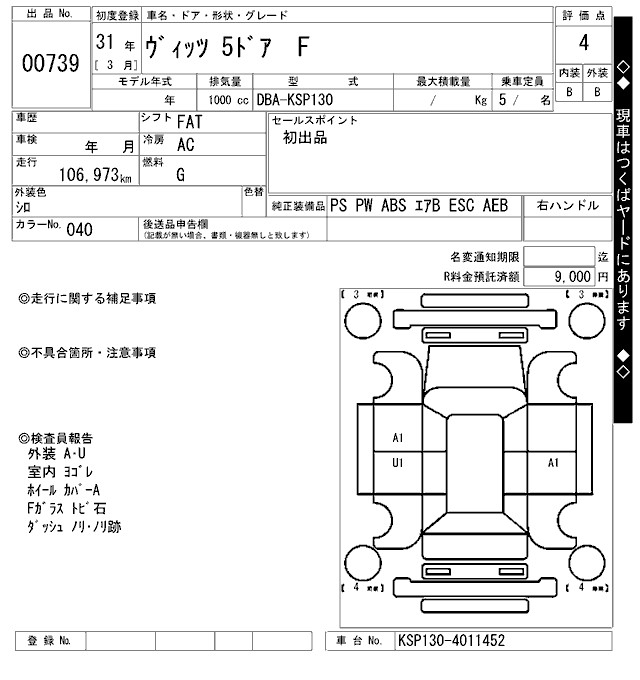 TOYOTA VITZ - лот 739