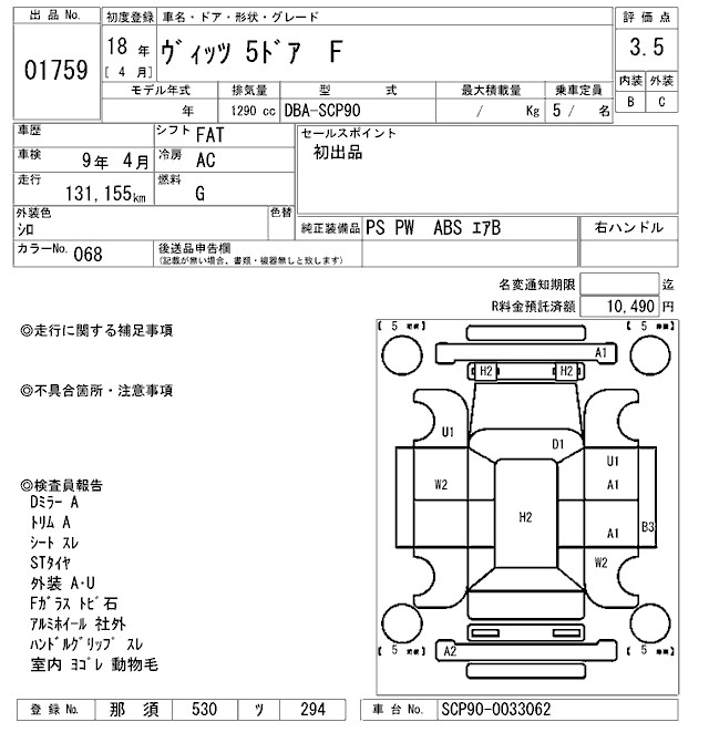TOYOTA VITZ - лот 1759