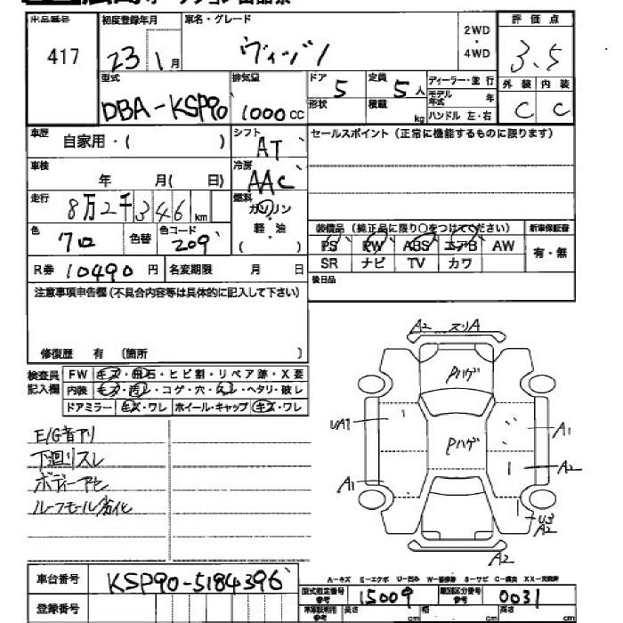 TOYOTA VITZ - лот 417