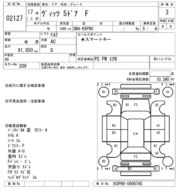 TOYOTA VITZ - лот 2127