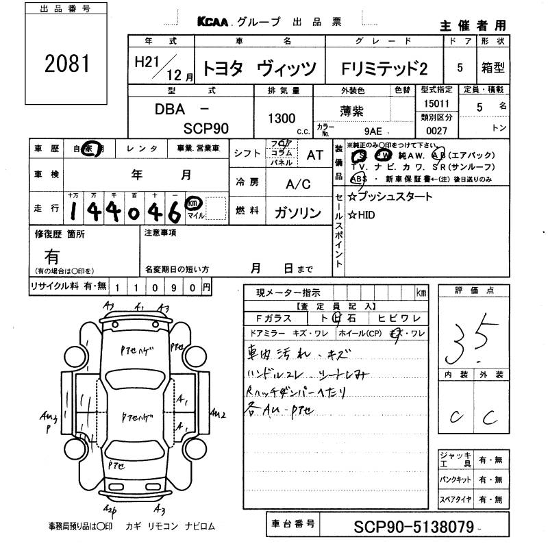 Все аукционы TOYOTA VITZ