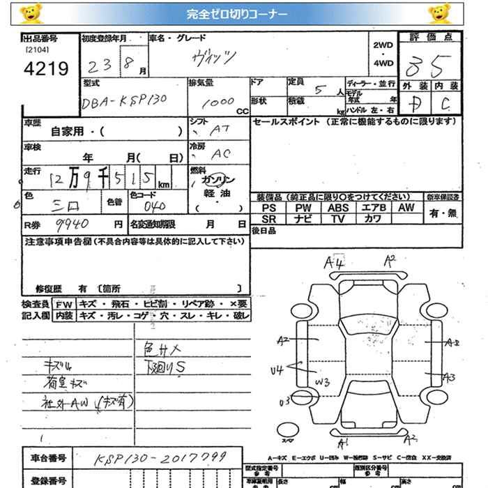 TOYOTA VITZ - лот 4219